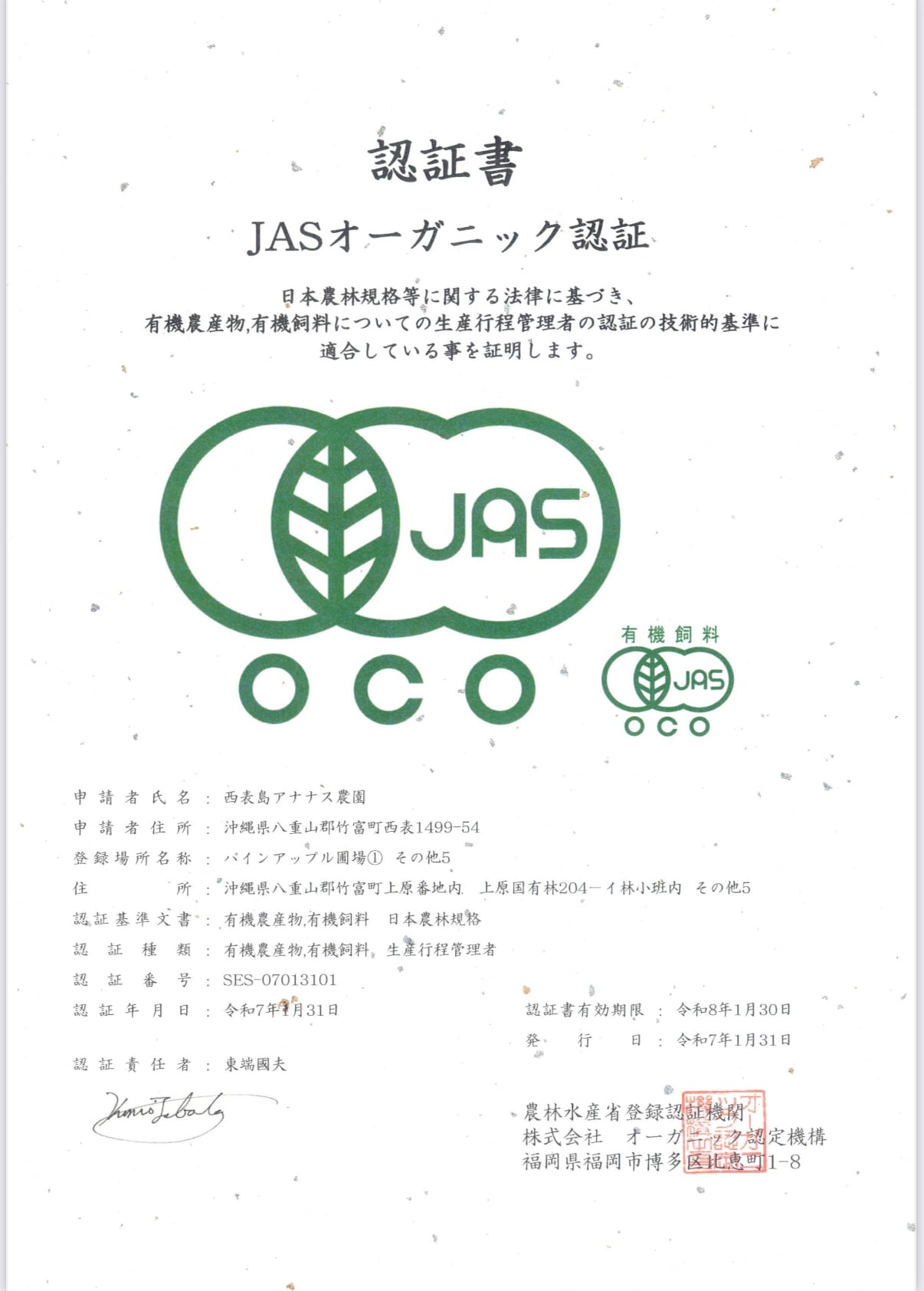 (化学肥料・農薬に頼らない栽培、厳格な生産管理など)をクリアしたもののみ取得。